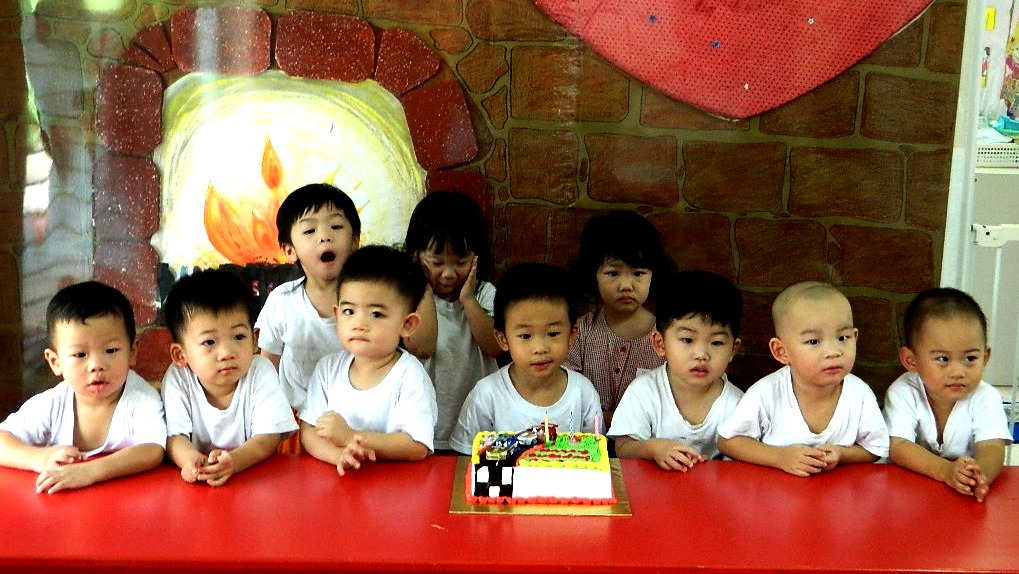 Went Rivervale Plaza to collect cake & took a cab down to Benson school... =) The little kiddo just woke up not long from their nap.. As usual.. Look a bit on daze.. Haha.. Benson is super surprise when he saw me while walking down the stairs from his class... ^^ He smiled... Then he hold my hand to their canteen area... All the kiddo wow when they saw cake.. & keep saying " Racing car , racing car "... Yes! We pick a Racing Car design for Benson because we know he will love it! Some photo taking session... Singing Birthday song... Benson look so shy! Hehe... took a class photo too.. =) All his classmate look super cute...